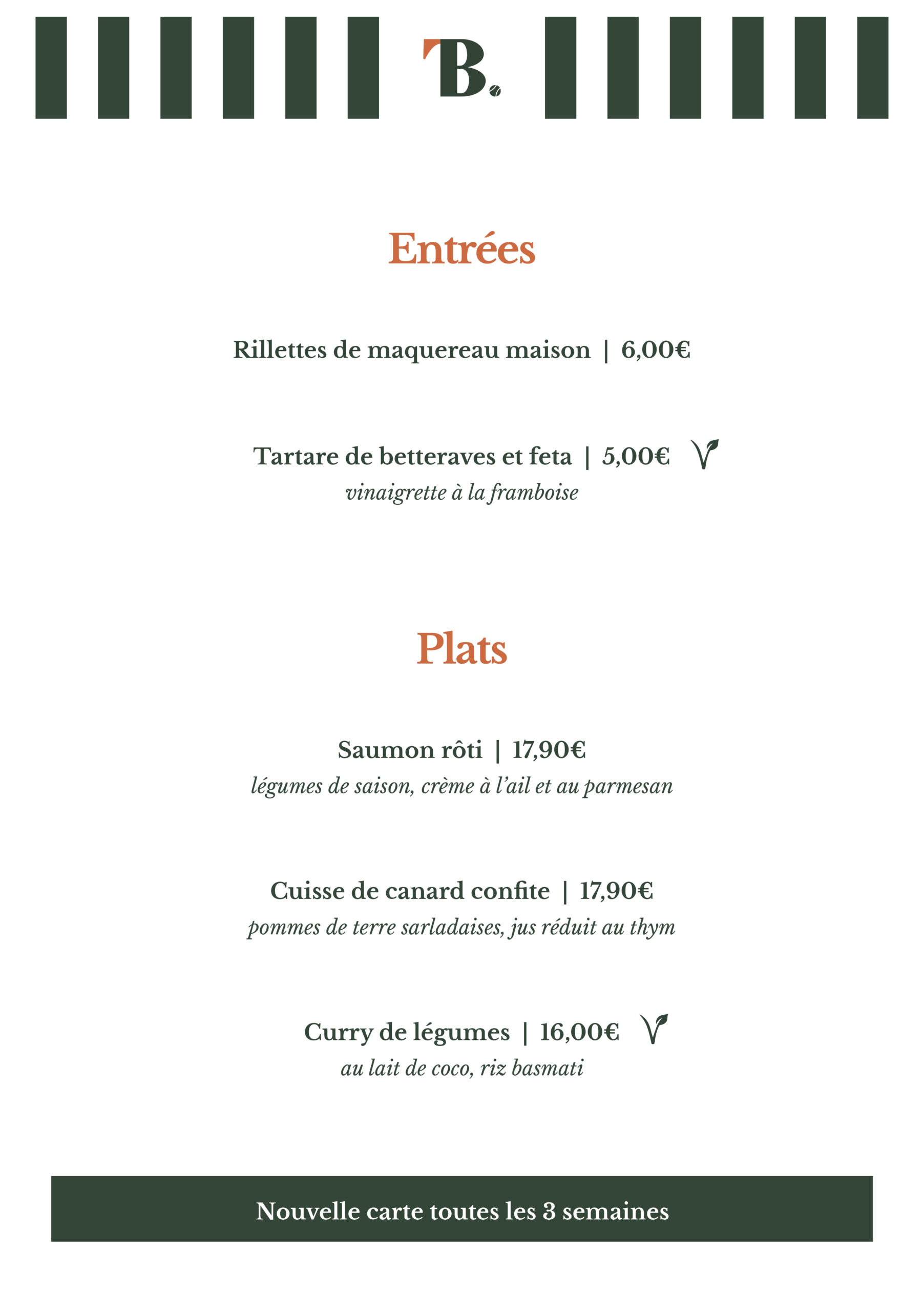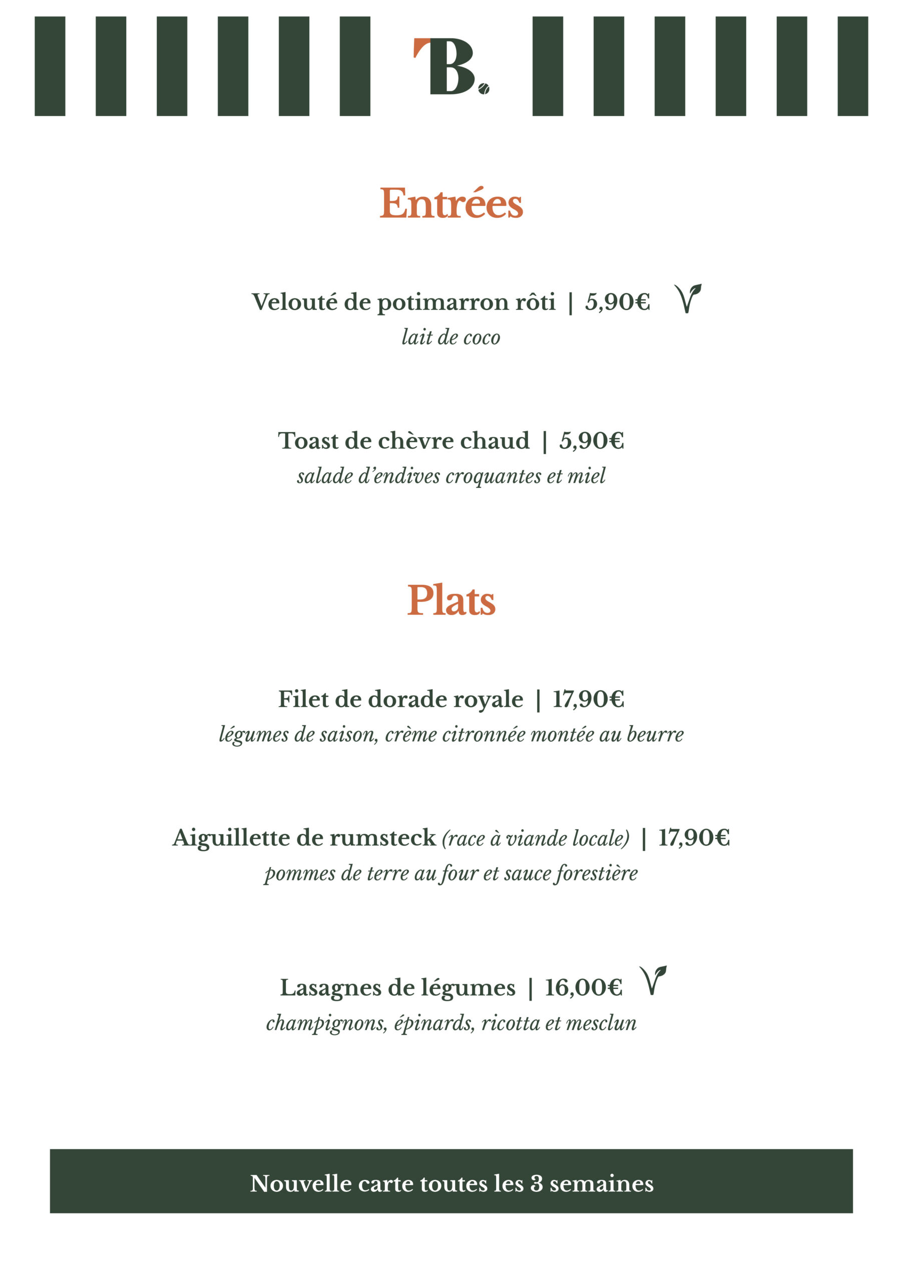 Découvrez notre espace restauration à Guilers, tout proche de Brest, où Hakim, notre chef passionné, vous propose chaque midi une cuisine élaborée exclusivement à partir de produits frais. La carte, savoureuse et de saison, est renouvelée régulièrement pour garantir variété, fraîcheur et qualité.